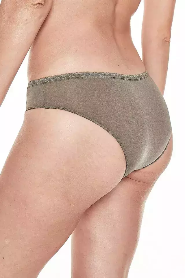 Brief con puntilla angosta, de Microfibra brillosa con Lycra. Art 4688