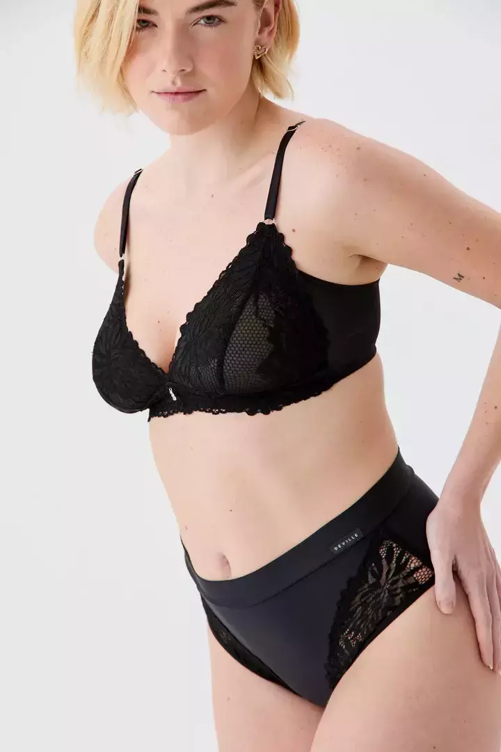Bombacha alta realizada en microfibra con detalles de puntilla y cintura sin elástico