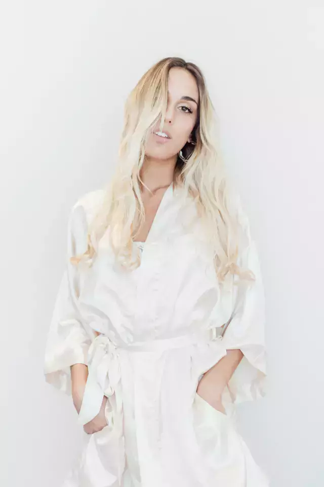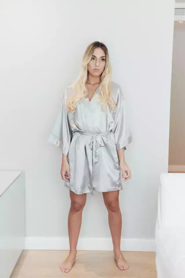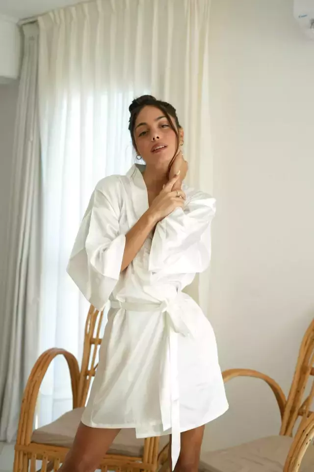 Bata de Saten con cinto estilo kimono.